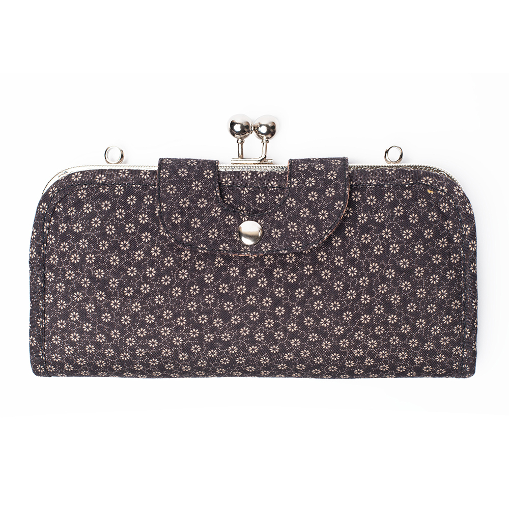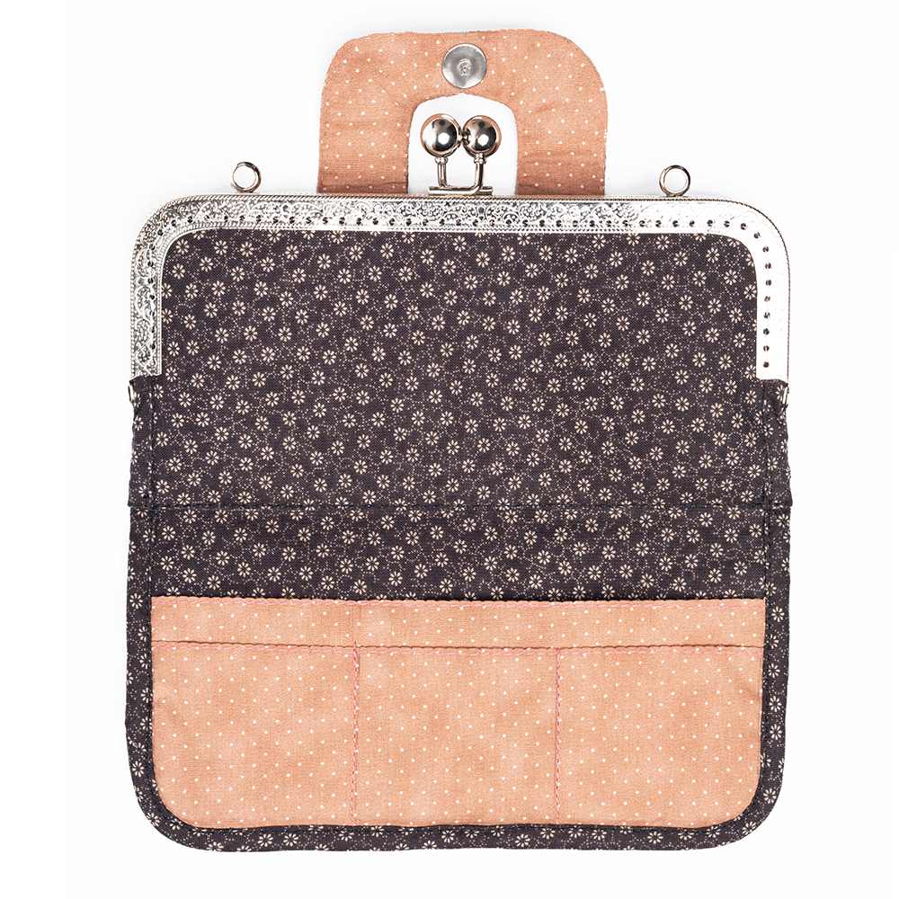 除了可以手拿外,口金上有著釦環,能扣上手提把或是斜背帶。
